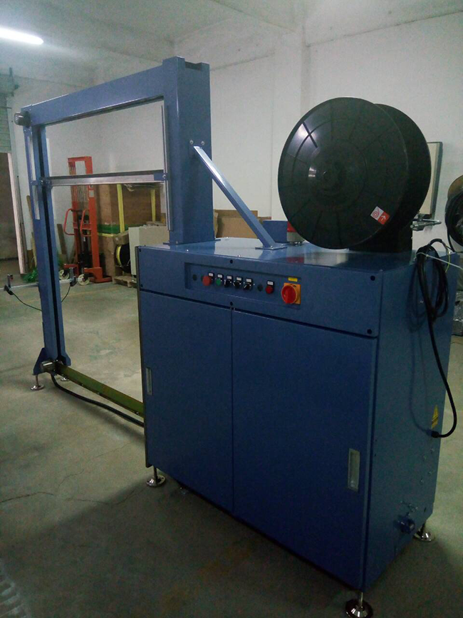 本針對棧板捆包而設計的機種,開放式弓架活動的穿帶能將棧板與捆包物牢固地捆包在一起,便于移動及運輸。
