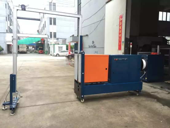 MH-107B自動托盤穿箭打包機是一款專門針對于棧板捆包而設計的一款打包機,該機具有伸縮性導軌,當機器檢測到與物品需要打包時,導軌會自動伸出,與原有的框架形成一個封閉式的帶道,之后進行自動打包,當一道作業完成之后,導軌會自動退回到打包機機身下面,然后由輸送設備將物品輸送到下一工位。