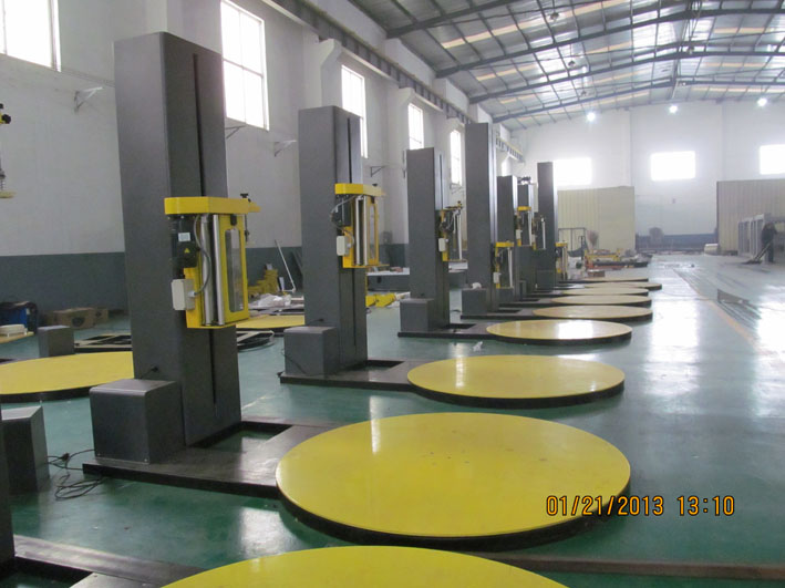 2.手動纏繞方式:將膜架下降至底部,將貨物放于底盤之上,將膜卷放于卷座上,按穿膜方式穿好薄膜,然后,啟動轉盤電機使轉盤轉動,此時薄膜將在貨物底部纏繞,當纏繞圈數達到您需要的程度時,按膜架上升按鈕使膜架上升到要求位置,按膜架下降按鈕使膜架下降到底部。重復以上過程完成包裝,按停止結束。