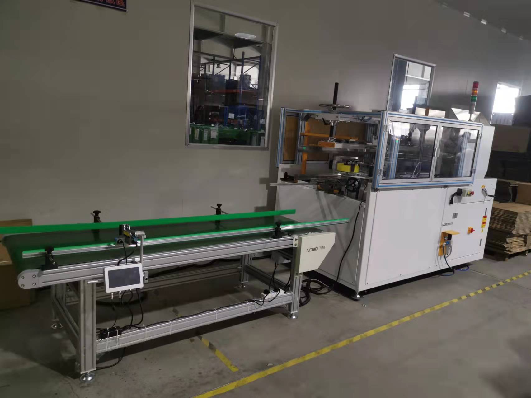 自動開箱機(jī)自動完成開箱、成形、下底折葉折曲.并現(xiàn)時完成下部分膠帶粘貼,開箱機(jī)將疊成紙板的箱板自動打開,箱子底部按一定程序折合,并用膠帶封好后輸送給裝箱工位的專用機(jī)器人設(shè)備。