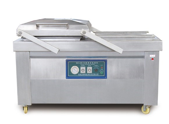 真空包裝機是包裝機的一種,利用其真空室對包裝進行抽空,然后再充入惰性氣體以達到防腐保質的目的。全自動雙室真空包裝機專為包裝含水量大的產品而設計,采用日本控制線路,吸取國外同行業的先進技術經驗,其電器方面采用微電腦控制器全程控制,它具有防水、防潮、故障率低、使用壽命長等優點,這些優點使該設備便于清洗,就算用水直接沖洗也不會發生任何電器故障,架體采用國際標準食品用304不銹鋼板,強度高,不易破損,它獨特的傾斜臺面設計,可以保證產品內的水份不流失,從而使產品的含水真空包裝更易操作。
